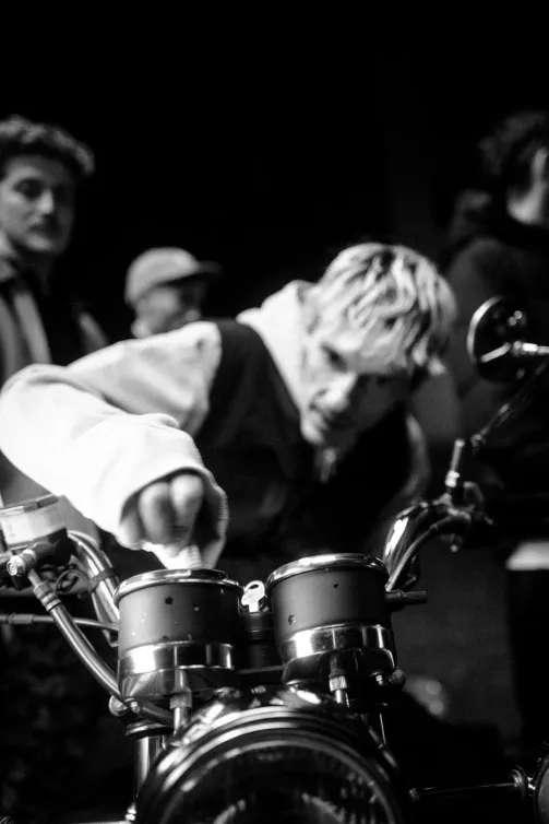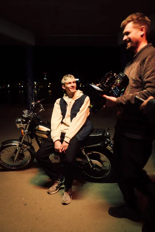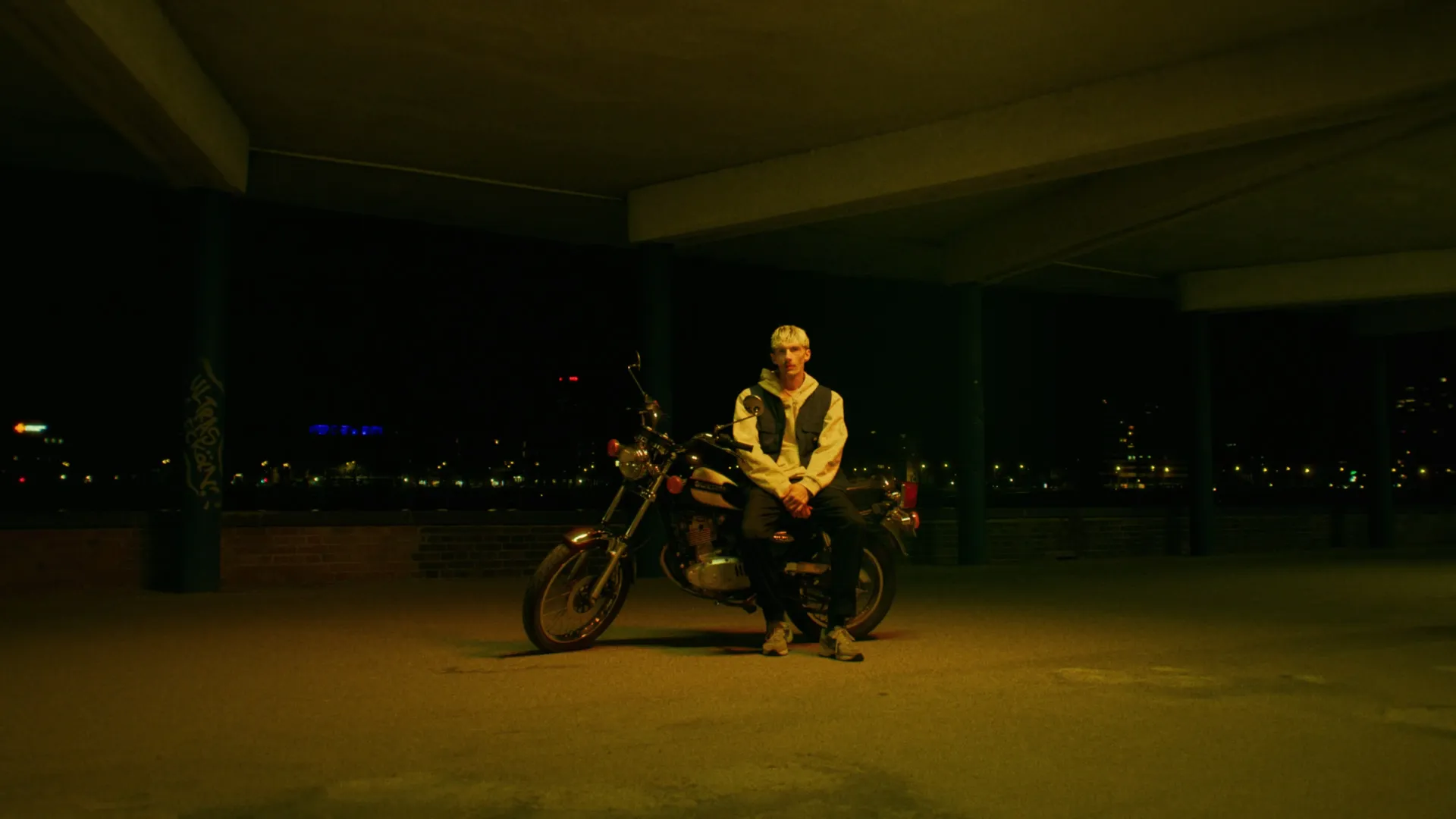 The motorcycle became one of the central symbols of the story. Frytz riding through empty Cologne streets at night represents freedom, introspection and emotional momentum. The bike allowed us to play with speed, light and wind to give the film a dynamic pulse that contrasts the softness of the song. With cinematic lighting setups, light haze and controlled routes, we transformed quiet roads into moving stages. The combination of chopper, city and music gave the video its visual identity. It became a journey rather than a series of shots, and that journey mirrors the emotional build of the track.